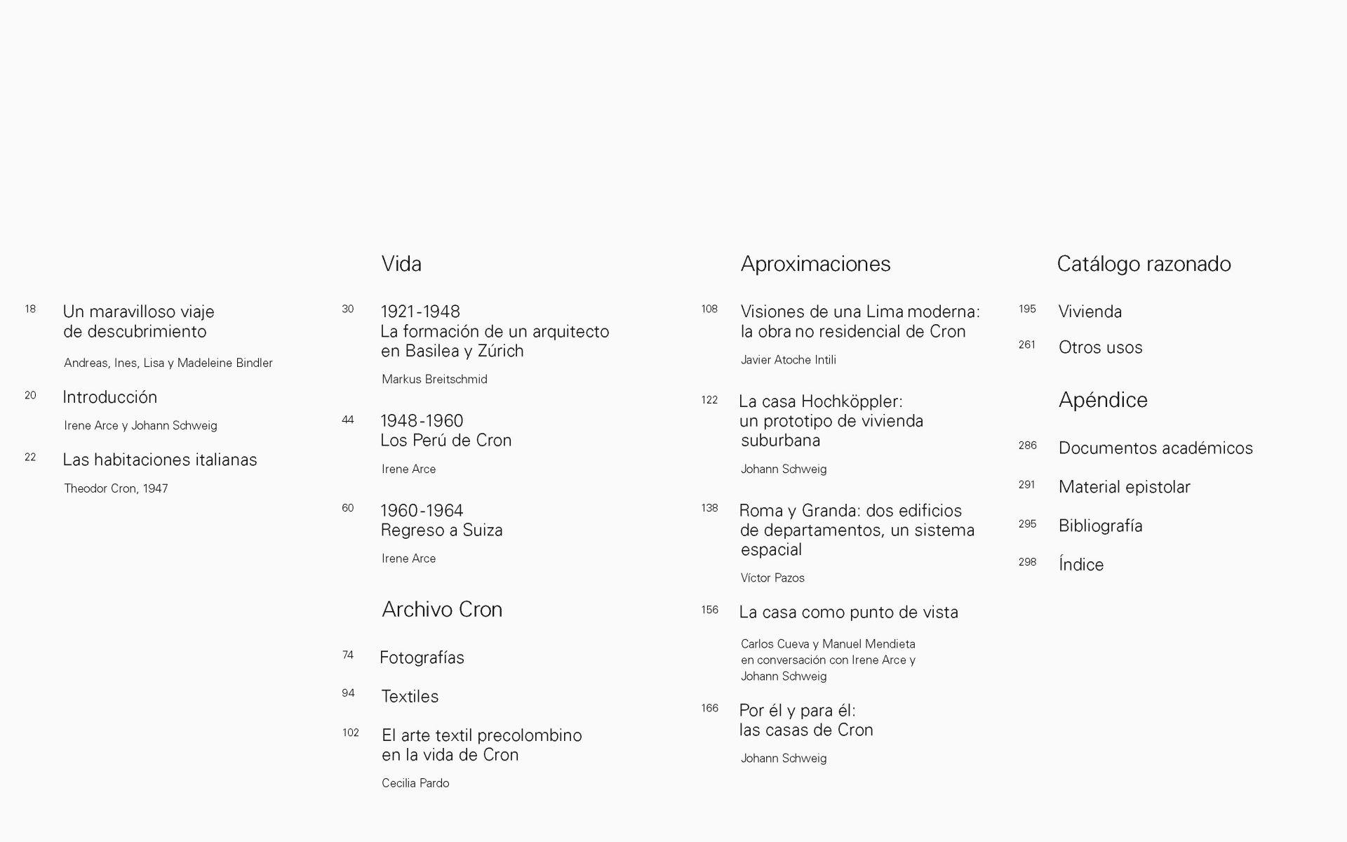 Se intercalan fotografías, dibujos, planos, cartas y memorabilia con ensayos de diversos autores que abarcan temas desde lo biográfico hasta lo analítico y vivencial, así como un catálogo razonado con obras anteriormente desconocidas.